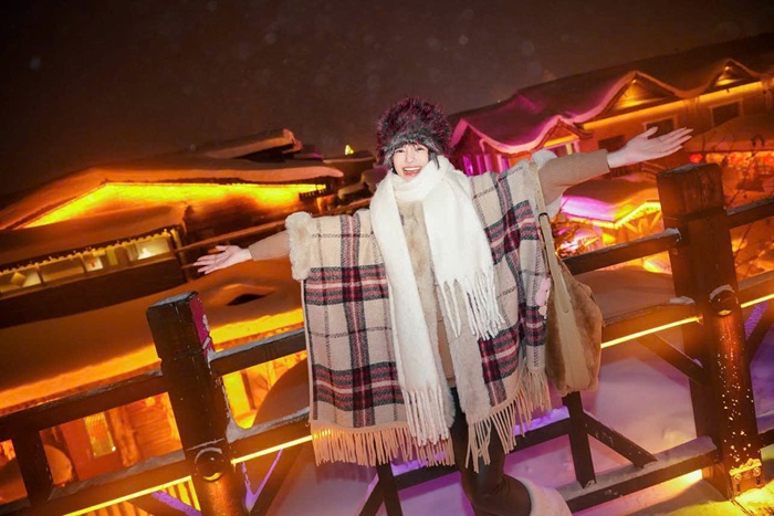 Á hậu Kiểu Loan tham quan và check-in tại làng Tuyết Hương. Ảnh: FBNV.Ngôi làng khiến nhiều du khách say mê vì mang trong mình vẻ đẹp vô cùng huyền ảo. Từng góc nhỏ trong làng, từ những con đường tuyết phủ đến những cây cầu gỗ, đều là background hoàn hảo cho những bức ảnh đẹp như tranh vẽ.
