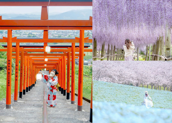 Hàng ngàn chiếc chuông gió xinh xắn tạo nên hiệu ứng thị giác vô cùng thú vị. Ảnh: looklook_official- Đền thờ Ukiha Inari: Ngôi đền Ukiha Inari nổi tiếng với 90 cánh cổng torii màu đỏ nổi bật giữa khung cảnh sườn núi xanh tươi. Để đặt chân đến ngôi đền, bạn phải qua hơn 300 bậc thang, và sau khi vượt qua đoạn đường dài, tầm nhìn ngoạn mục chiêm ngưỡng toàn cảnh thung lũng phía dưới chắc chắn sẽ khiến bạn phải trầm trồ, cảm thán đấy.