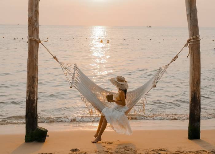 Tận hưởng khoảnh khắc hòa mình vào thiên nhiên hiếm có. Ảnh: tuday566Không chỉ là nơi thư giãn, Bãi Sao còn đem đến nhiều trải nghiệm thú vị như chèo thuyền kayak, lặn ngắm san hô hay đơn giản là thưởng thức hải sản tươi ngon ngay bên bờ biển. Khi hoàng hôn buông xuống, cả bãi biển khoác lên mình một sắc màu huyền ảo đẹp đến nao lòng.