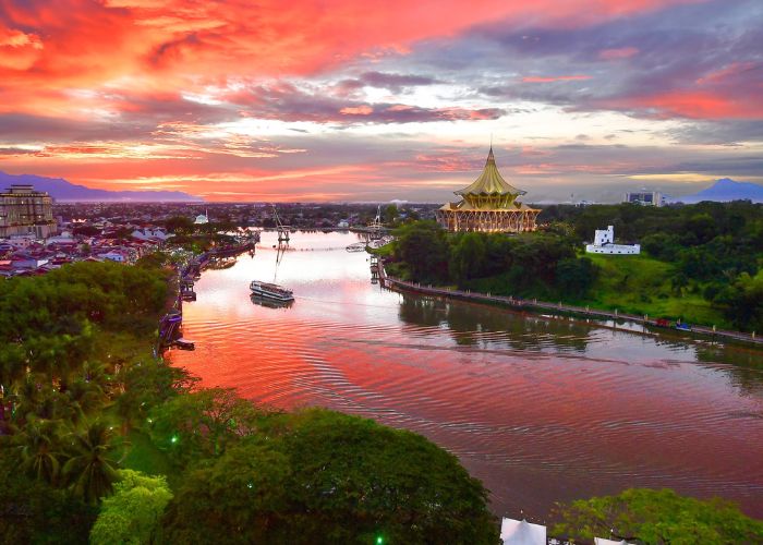 Kuching nằm duyên dáng bên dòng sông Sarawak, ở phía tây bắc đảo Borneo. Thành phố mang vẻ đẹp hiền hòa với biển xanh mênh mông, bầu trời trong vắt và ánh nắng rực rỡ, khiến bất cứ ai đặt chân đến cũng khó lòng rời đi. Bên cạnh khung cảnh hữu tình, Kuching còn nổi bật với hệ thống khách sạn và khu nghỉ dưỡng sang trọng, mang đến trải nghiệm nghỉ dưỡng đẳng cấp quốc tế.
