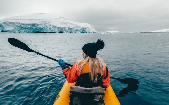 Chèo thuyền kayak là hoạt động phổ biến nhất ở Nam Cực. Ảnh: vayaadventuresChèo thuyền kayak là hoạt động phổ biến nhất ở Nam Cực vì nó cho phép bạn di chuyển qua các tảng băng trôi vào các kênh nước nhỏ hơn để tha hồ chiêm ngưỡng những cảnh tượng băng đá tuyệt vời. Các tour du lịch cũng thường cho phép du khách đi trên những chiếc thuyền cao su nhỏ có sức chứa 10-12 người. Đây là một cách tuyệt vời để đến gần hải cẩu và chiêm ngưỡng chúng trong môi trường sống tự nhiên, bao gồm cả hải cẩu báo.
