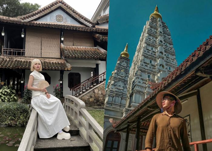 Với kiến trúc tuyệt đẹp của chùa Huyền Không Sơn Trung Huế, du khách khi tới đây chắc chắn sẽ không thể bỏ lỡ cơ hội được chụp ảnh check in. Đặc biệt, cảnh quan thơ mộng của ngôi chùa với bảo tháp Đại Giác mang đến vẻ đẹp vừa độc đáo vừa ấn tượng, background là bảo tháp vẫn luôn là vị trí check in ưa thích của nhiều du khách khi đến với ngôi chùa. Đồng thời khu vườn và kiến trúc cổ kính của chùa Huyền Không 1 cũng là không gian tuyệt đẹp để thả dáng.