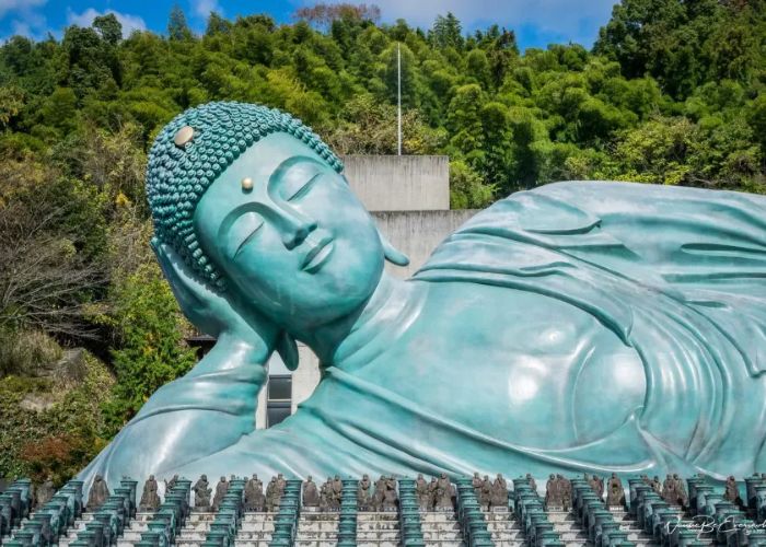 Tượng Phật nằm tại chùa Nanzoin (Fukuoka) là một trong những công trình Phật giáo ấn tượng nhất Nhật Bản. Với chiều dài khoảng 41 mét, cao 11 mét và nặng 300 tấn, bức tượng được đúc bằng đồng nguyên khối này được xem là tượng Phật nhập Niết Bàn lớn nhất Nhật Bản và nằm trong top đầu thế giới. Tượng mô tả hình ảnh Đức Phật Thích Ca đang an nhiên nhập Niết Bàn - biểu tượng của sự giải thoát, buông bỏ và thanh tịnh tuyệt đối trong đạo Phật.