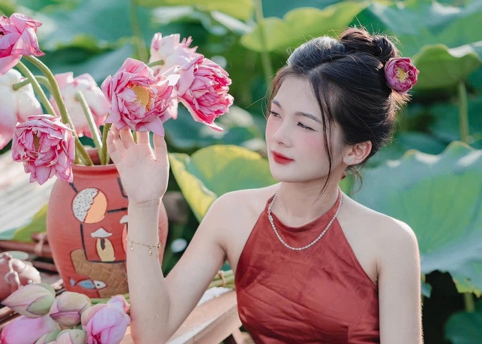 Ở đầm sen Âu Cơ Bắc Ninh có dịch vụ cho thuê trang phục rất thuận tiện. Ảnh: Check in Bắc NinhTheo kinh nghiệm của những người đi trước, để tránh nắng nóng và có những bức ảnh đẹp nhất, bạn nên đi vào sáng sớm hoặc chiều muộn hoàng hôn. Lúc này, ánh sáng đẹp, lên ảnh cực xinh.