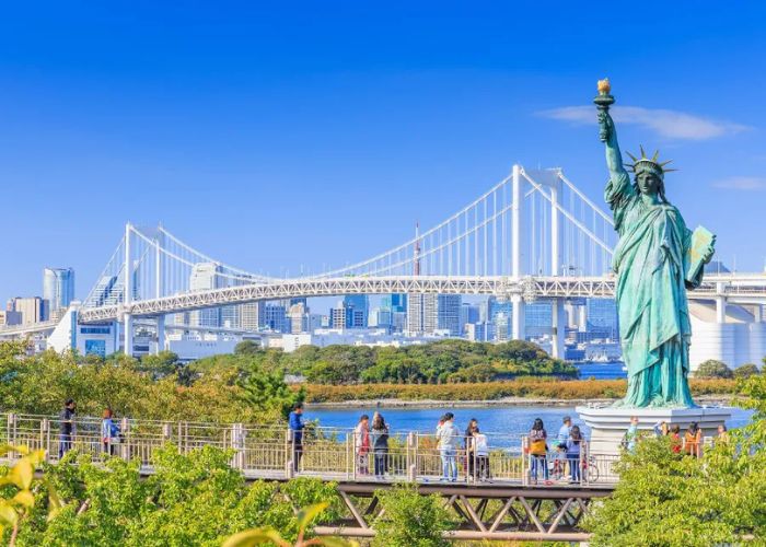 Odaiba là một đảo nhân tạo nổi tiếng nằm trong khu vực vịnh Tokyo, Nhật Bản. Ảnh: vita_intelligenteĐảo nhân tạo Odaiba Nhật Bản là điểm đến lý tưởng cho du khách khi ghé thăm Tokyo, mang đến trải nghiệm du lịch đa dạng, kết hợp giữa giải trí, mua sắm, thư giãn và khám phá văn hóa. Du khách có thể dễ dàng đến Odaiba bằng tàu điện trên cao Yurikamome – một tuyến tàu không người lái, mang đến hành trình ngắm cảnh ấn tượng qua cầu Rainbow nổi tiếng.