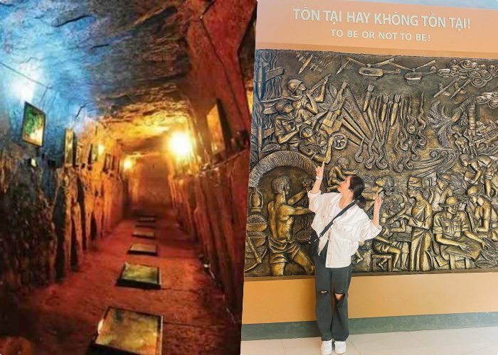 Kết hợp với khám phá địa đạo, du khách có thể tham quan nhà trưng bày nằm cách đó không xa, trong khuôn viên vẫn còn những mảnh bom đạn sót lại được trưng bày và bức tranh nổi tiếng To Be Or Not To Be.