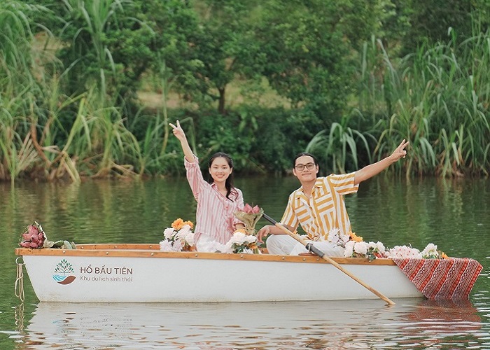 Khu du lịch còn có cả vườn thú cho bạn tha hồ check in. Ảnh: FanpageKhu du lịch trải rộng trên diện tích 140ha, trong đó 120ha là diện tích mặt nước. Nhờ đó, các hoạt động dưới nước chèo thuyền, chèo SUP, dạo hồ... rất được yêu thích. Bạn vừa ngắm cảnh xung quanh, vừa vận động thể thao, tốt cho sức khỏe. Cảm giác lững thững thả trôi trên mặt nước, hít thở không khí trong lành giúp bạn xả stress cực hiệu quả. Bầu Tiên có nhà sàn cộng đồng với sức chứa gần 500 người phục vụ đủ các món ăn đặc sản địa phương cho du khách tha hồ thưởng thức. Những món ăn ngon nhất định không được bỏ qua khi tới khu du lịch sinh thái này là gà nướng, thịt nướng, xôi...