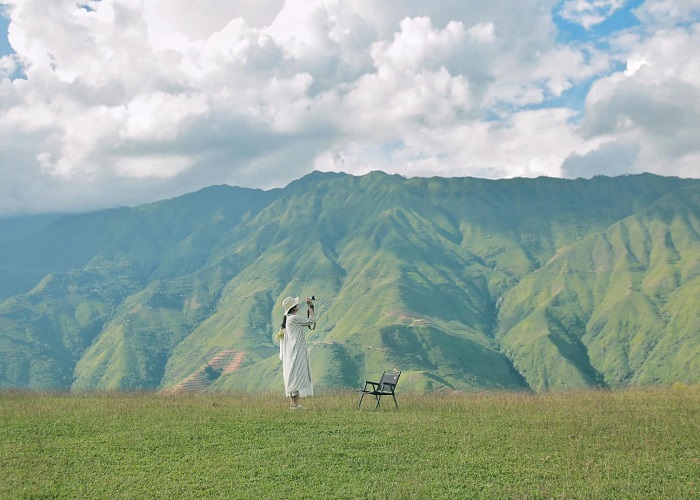 Cực chill giữa không gian một màu xanh mướt. Ảnh: Lemon8Tới thảo nguyên Tà Xùa, khách du lịch Sơn La sẽ được hòa mình, tận hưởng không khí trong lành, thoáng đãng của vùng núi Tây Bắc, trekking thảm cỏ xanh mướt, chẳng khác nào Thụy Sĩ của miền Bắc, dạo quanh con đường uốn lượn như sống lưng khủng long, uống cà phê ngắm biển mây trôi trắng xóa, check in cây cô đơn, mỏm cá heo nổi tiếng... Một chuyến đi 2 ngày 1 đêm tới thảo nguyên xanh rì này chắc chắn sẽ để lại ấn tượng khó quên trong lòng mỗi du khách.