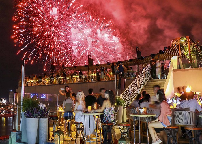 Bạn nên đặt chỗ trước để có vị trí đẹp. Ảnh: danangfantasticityKinh nghiệm của những người đi trước rằng, các điểm ngắm pháo hoa ở Đà Nẵng ở trên cao này đa số nhanh full bàn. Do đó, bạn nên đặt trước để có vị trí đẹp và tránh tình trạng hết chỗ.