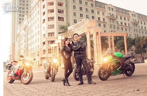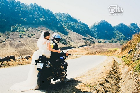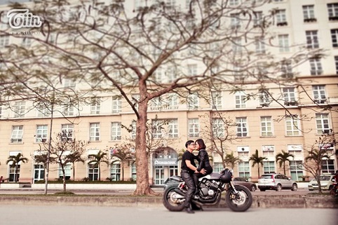 Bộ ảnh cưới ghi lại những khoảnh khắc vô cùng hạnh phúc của Kiên – My trên chiếc xe phân khối lớn. Chiếc xe vốn là vật gắn bó của hai người trên mọi nẻo đường đã đi qua.