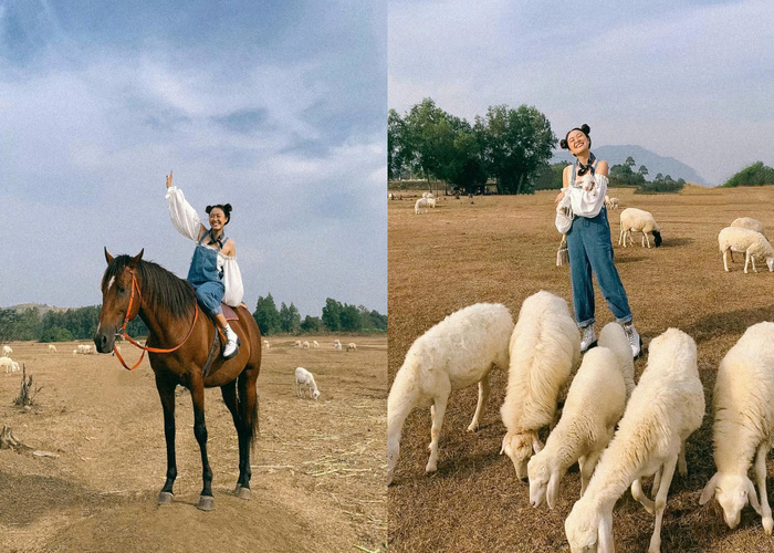 Đừng quên mang theo các vật dụng chống nắng nhé. Ảnh: vubichthao0809- Nếu bạn có nhu cầu chụp ảnh cưới hoặc chụp ảnh chuyên nghiệp thì cần chủ động liên hệ trước với chủ đàn cừu để được sắp xếp điều kiện chụp hình tốt nhất.