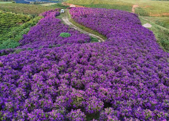 Mỗi độ thu về, những triền núi ở Mộc Châu và Vân Hồ lại rực rỡ sắc tím hoa mua, tạo nên bức tranh thiên nhiên vô cùng lãng mạn. Đây là thời điểm lý tưởng để du khách trải nghiệm và lưu lại khoảnh khắc đáng nhớ khi du lịch Sơn La.