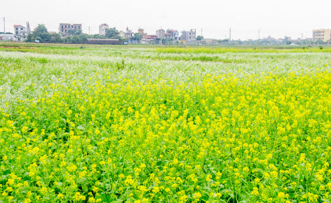 Ruộng cải độc đáo với màu vàng của cải ngồng và trắng của cải củ.