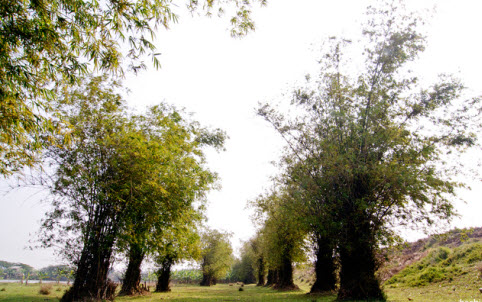 Chạy xe theo đường Quốc lộ 5, rẽ vào đê sông Đuống từ ngã tư Cổ Bi, Gia Lâm,