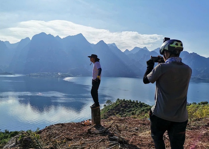 Với diện tích lòng hồ lên tới hơn 10 ha, trải dài khoảng 62km, lòng hồ thủy điện Sơn La ở Quỳnh Nhai còn được bao bọc bởi núi cao hùng vỹ, rừng xanh cao vút, xanh rì... Nhờ đó mà khung cảnh nơi này được khen ngợi sơn thủy hữu tĩnh, rất đáng để bạn ghé thăm khi du lịch Sơn La.