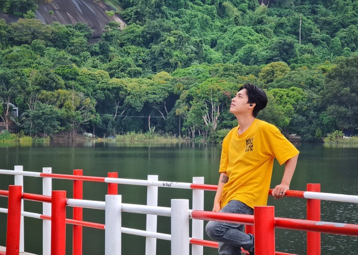 Khung cảnh hồ nước trong xanh được bao bọc giữa cảnh quan núi rừng hùng vĩ chắc chắn sẽ khiến bạn phải thốt lên trầm trồ. Ảnh: han.moo._Vị trí đẹp nhất để chiêm ngưỡng toàn cảnh thiên nhiên hữu tình là cây cầu nhỏ được xây dựng hướng ra phía hồ nước. Tại đây, bạn có thể thỏa sức phóng tầm mắt chiêm ngưỡng hồ nước thơ mộng được bao bọc giữa núi rừng hùng vĩ và thoải mái tận hưởng bầu không khí trong lành, mát mẻ.