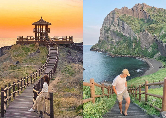 Jeju là hòn đảo đẹp nhất ở Hàn Quốc. Ảnh: PinterestKhám phá cảnh quan độc đáo của hòn đảo nổi tiếng nhất Hàn Quốc tại đỉnh Seongsan Ilchulbong Tuff, mạo hiểm vào Hang dung nham Manjanggul, chinh phục kỳ quan của Công viên quốc gia Hallasan, ghé thăm Mũi Seopjikoji, Yongnunioreum Parasitic, đi dạo qua Rừng Bijarim và chiêm ngưỡng Thác Jeongbangpokpo. Thư giãn tại những bãi biển đẹp như Bãi biển Hamdeok, Hyeopjae và Jungmun Saekdal. Tìm hiểu về văn hóa và lịch sử tại Bảo tàng Lịch sử dân gian và Tự nhiên Jeju, Bảo tàng Gấu bông, Chợ truyền thống Dongmun và Đền Samseonghyeol.