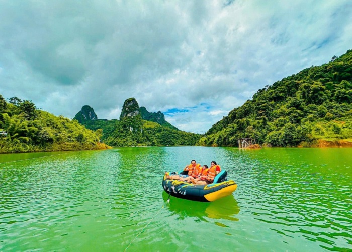 Rất nhiều điều thú vị đang chờ đón bạn tại Pá Khôm. Ảnh: Du lịch Lai ChâuTới Vịnh Phá Khôm, ngoài ngắm cảnh, tận hưởng vẻ đẹp dịu dàng của tạo hóa, khách du lịch còn được thỏa thích bơi lội, tắm mát, câu cá, chụp ảnh. Nếu thích vận động, bạn có thể chèo thuyền kayak, trượt zipline, đi motor nước... tự cảm nhận hơi thở của sông nước. Ở đây cũng có dịch vụ cho thuê bè nổi tự chèo để du khách có thể tự dạo chơi trên hồ nước xanh trong.