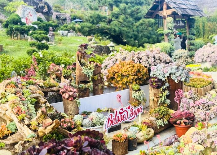 Tại khu du lịch Sun World Fansipan Legend, du khách sẽ được chiêm ngưỡng Vườn An Nhiên – không gian trưng bày hàng nghìn cây sen đá được sắp đặt thành nhiều tiểu cảnh sinh động. Mỗi khu vườn mang một câu chuyện riêng, tái hiện hành trình tìm về sự tĩnh tại và cân bằng giữa thiên nhiên núi rừng Tây Bắc.