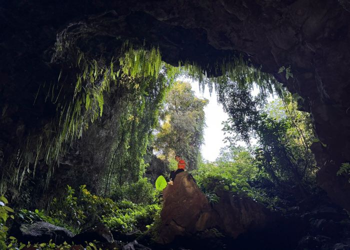 Khi đặt chân đến hang C7, bạn sẽ được chiêm ngưỡng sắc xanh của thảm thực vật nhiệt đới mọc tươi tốt càng vào bên trong, không gian càng lạnh và ẩm, có những đoạn vòm hang cao từ 15m đến 20, thành hang hình thành do dòng chảy của dung nham ngoằn ngoèo, ở đây cũng có cả giếng trời nhỏ có ánh sáng chiếu vào hang. Sau khi khám phá bạn sẽ cần leo dây để trở ngược ra bên ngoài.