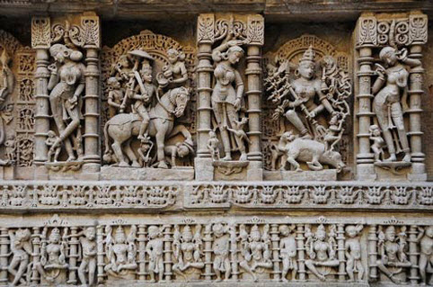 Đền Rani ki vav thiết kế đền ngược, bắt đầu ở mặt đất, dẫn xuống các tầng dưới để xuống tới giếng bên dưới. Ban đầu, công trình được xây dựng khá đơn giản, nhưng đã bổ sung thêm các vị thần đá chạm khắc, có lẽ để làm sáng tỏ những khái niệm cổ xưa về sự thiêng liêng của nước đối với tinh thần, xã hội….
