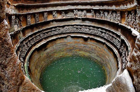 đền ngược ở Ấn Độ được thiết kế theo lối kiến trúc ngầm độc đáo. Với chiều dài 64 mét, rộng 20 và sâu 27 mét, ngôi đền này có tổng cộng 7 tầng ngầm khiến nó là một trong những công trình có cấu trúc lớn nhất và lộng lẫy nhất về loại hình này. Bên trong đền là hơn 500 bức phù điêu được chạm khắc tinh xảo phản ánh kỹ thuật chạm khắc điêu luyện, đỉnh cao của những người thợ thủ công lúc bấy giờ. Trong đống đổ nát , một giếng nước hình trụ có đường kính 30 mét và sâu 10 mét vẫn đứng đó là một ví dụ tuyệt vời của thiết kế xây dựng thời kỳ này. Xung quanh các bức tường trong giếng là các bức phù điêu tinh xảo. Hầu hết các tác phẩm điêu khắc trong lòng giếng thể hiện sự sùng kính đối với thần Vishnuvà hình ảnh tượng trưng của Kalki, Rama, Mahisasurmardini, Narsinh, Vaman, Varahi.