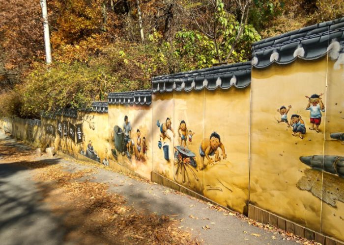 Làng bích họa Mabijeong không chỉ là một điểm đến nghệ thuật mà còn mang đậm dấu ấn văn hóa và lịch sử Hàn Quốc. Nơi đây vẫn giữ được những ngôi nhà Hanok truyền thống với mái ngói cong, tường đất sét và cổng gỗ đặc trưng, tái hiện hình ảnh làng quê cổ xưa. Mỗi con đường, mỗi bức tranh đều kể một câu chuyện về đời sống của người dân, từ cảnh sinh hoạt thường ngày đến những phong tục tập quán lâu đời.