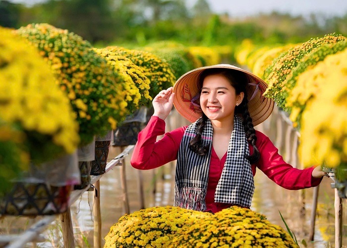Lập team tới làng hoa Sa Đéc thôi nào. Ảnh: An Nhiên Làng hoa Sa Đéc có gì vui? Tại Làng hoa Sa Đéc, hoa không trồng trên đất mà được đặt trong giỏ tre, đặt trên giàn cao nhìn rất đẹp và bắt mắt. Tới đây, hình ảnh những cô gái trong tà áo bà ba cùng nón lá bên những luống hoa trong nắng vàng rực rỡ tạo nên một bức tranh mùa xuân đẹp khó tả. Bởi vậy, hàng năm, không biết bao nhiêu nhiếp ảnh gia và khách du lịch Đồng Tháp về đây để ngắm nhìn và chụp ảnh.