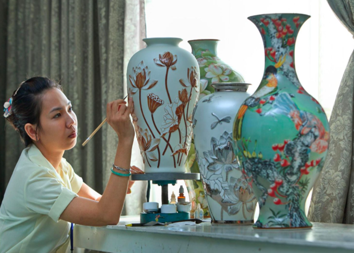 Người nghệ nghệ nhân thổi hồn vào từng chiếc bình và biến chúng trở thành những tác phẩm nghệ thuật ấn tượng. Ảnh: Tạp Chí Điện Tử Thiên Nhiên Và Môi TrườngĐến nay, làng nghề truyền thống ở Bình Dương nổi tiếng đã không còn hưng thịnh như xưa, nhiều người phải bỏ nghề tìm công việc khác có thu nhập tốt hơn nhưng vẫn còn những hộ gia đình quyết tâm bám trụ với nghề gốm sứ, giữ gìn nét đẹp văn hóa có tuổi đời hơn trăm năm mà ông cha để lại.
