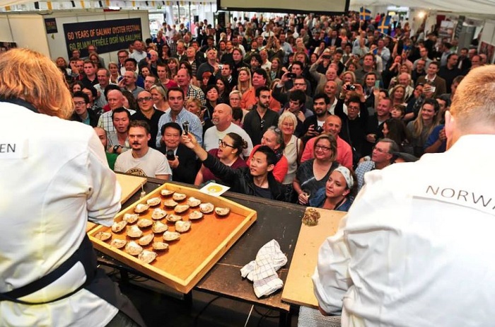 Người tham gia lễ hội hàu ở Ireland được thưởng thức những đặc sản của Ireland: kỷ lục Guinness, nhạc sống và hải sản hảo hạng nhất.Vào tuần cuối cùng của tháng 9, thành phố Galway ở phía tây Ireland lại trở nên sôi động với lễ hội ẩm thực nổi tiếng thế giới – Lễ hội Hàu và Hải sản Quốc tế Galway. Những người tham gia được thưởng thức những đặc sản của Ireland: kỷ lục Guinness, nhạc sống và hải sản hảo hạng nhất cùng các buổi biểu diễn đường phố, diễu hành, khiêu vũ đầy màu sắc.