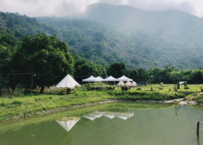 Với vị trí ngay dưới chân núi Bà Đen, khu cắm trại này được bao bọc bởi thảm thực vật xanh mướt, rừng nguyên sinh và dòng suối trong lành, tạo nên một không gian lý tưởng để “trốn” khỏi nhịp sống đô thị ồn ào. Không khí mát mẻ, đặc biệt vào mùa khô (tháng 10 đến tháng 4), khiến nơi đây được ví như một góc nhỏ của Đà Lạt giữa lòng Tây Ninh.