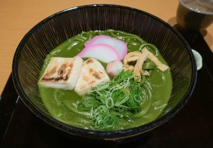 Mì ramen matcha là một trong những món ăn độc đáo từ matcha phổ biến ở Nhật Bản. Ảnh: byfoodHãy tưởng tượng bạn đang thưởng thức những sợi mì ramen tươi màu xanh lá cây ngập trong tô nước dùng thơm mùi trà, nghe mới hấp dẫn làm sao! Mì ramen matcha là một trong những món ăn làm từ matcha phổ biến ở Nhật Bản cũng như một số quốc gia khác, bạn có thể tìm nó trong các nhà hàng hoặc đôi khi là các cửa hàng tiện lợi. Vị chát của matcha kết hợp hoàn hảo với nước dùng đậm đà, cùng các topping đi kèm khiến bạn thích thú khi thưởng thức.