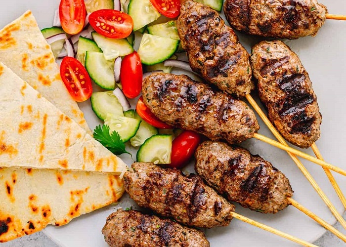 Hương vị nướng thơm lừng đã tạo nên kebab và kofta, hai món ăn nổi tiếng nhất Ai Cập. Ảnh: poshjournalẨm thực Ai Cập mang đến hai món thịt nướng vô cùng phổ biến. Kebab là những miếng thịt cừu nướng lửa thơm ngon, trong khi kofta mang đến món thịt cừu hay thịt bò xay được xiên tẩm gia vị thơm ngon cùng rau mùi tây, hành tây và tỏi. Hương vị nướng thơm lừng được ăn kèm với tahini, salad trộn, dưa chua và bánh mì đã tạo nên hai món ăn nổi tiếng nhất Ai Cập. Để có trải nghiệm tốt nhất, du khách hãy đến El Kebabgy tại Sofitel Cairo để thưởng thức kebab và kofta.