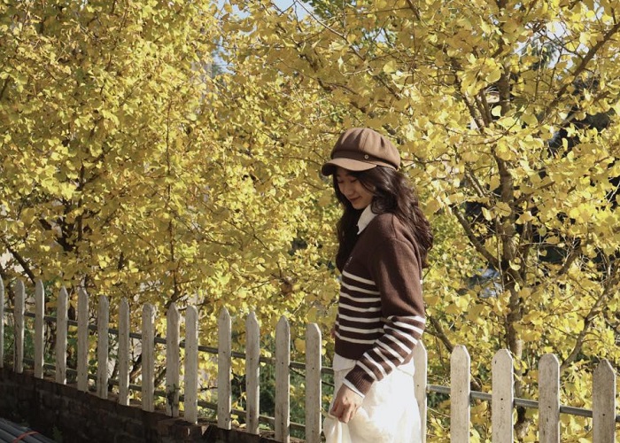Lạc vào chốn cổ tích với mùa ngân hạnh ở Sa Pa. Ảnh: Linh JiiĐiểm ngắm mùa ngân hạnh Sa Pa khác là khu vực Cat Cat Hill. Điểm này có bậc thang và lan can gỗ càng làm cho background chụp ảnh thêm lung linh, chẳng kém gì Hàn Quốc hay Trung Quốc… Do lá cây màu vàng nên khách du khách có thể chọn những trang phục màu trắng, mùa nâu… giúp tấm hình với mùa ngân hạnh ở Sa Pa càng thêm rực rỡ và bắt mắt.