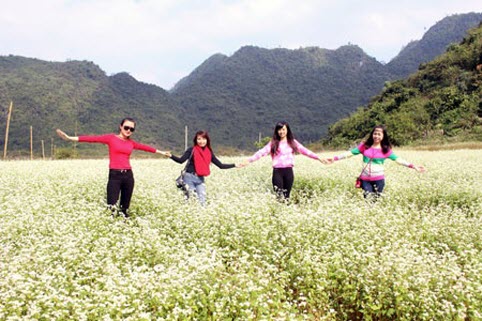 Giới trẻ thích thú khi mùa hoa tam giác mạch trắng về