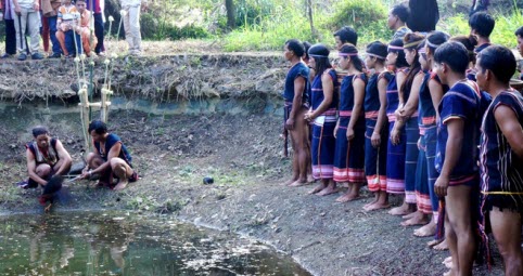 Lễ được tổ chức tại một bến nước (thường là con suối gần làng), người dân đã dọn dẹp sạch sẽ và chuẩn bị một cây nêu. Hội đồng già làng chọn ra một thanh niên trai tráng để cột cùng với vật hiến tế (thường là một con gà trống) và làm lễ.