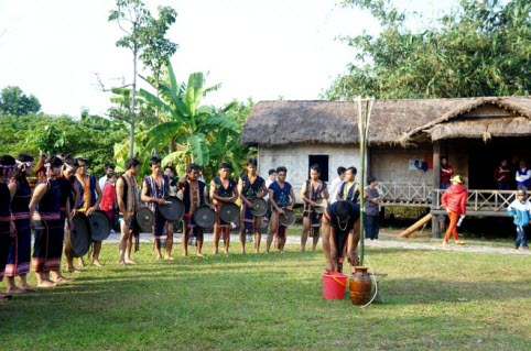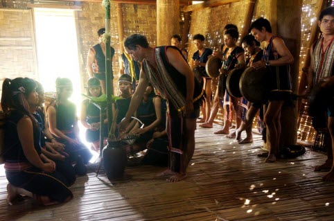 Xong xuôi các thủ tục, già trẻ gái trai trong làng đều đổ ra sân trước nhà Rông và tổ chức ăn mừng, ca múa rộn ràng.