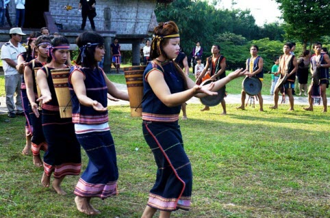 Những chàng trai, cô gái Gia Rai vui mừng nhảy múa trong tiếng cồng chiêng, trống tưng bừng. Họ thể hiện các điệu múa truyền thống với một niềm tin thành kính.