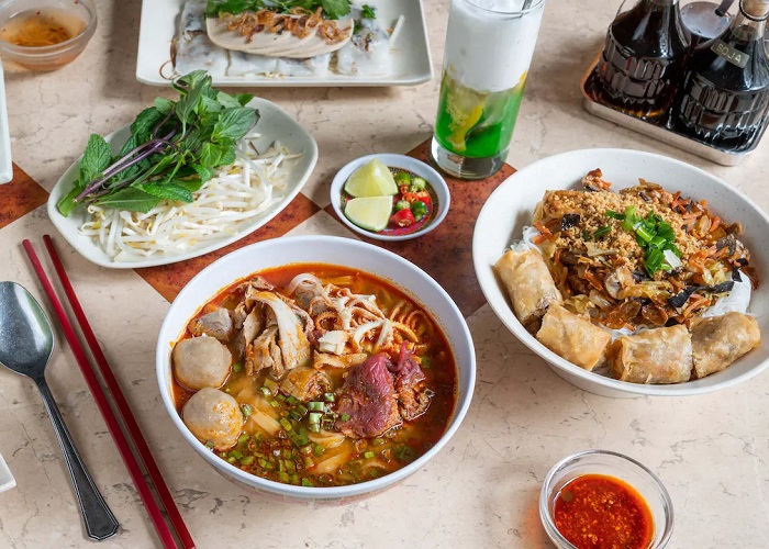 Những món ăn ở Song Heng sẽ đưa du khách vào thế giới ẩm thực của một trong những nhà hàng Việt nổi tiếng nhất Paris. Ảnh: theboywhoatetheworldThực đơn tại Song Heng vô cùng đơn giản với ba món: nem, phở và bún bò. Những chiếc nem làm tại nhà được phục vụ ngay khi vừa chiên xong, ăn kèm với ớt Birdseye thái nhỏ sẽ đưa du khách vào thế giới ẩm thực của một trong những nhà hàng Việt nổi tiếng nhất Paris. Phở của nhà hàng cũng không kém cạnh, được phục vụ với thịt bò hầm thái mỏng và thịt bò viên, đi kèm nước dùng đậm đà với hương vị khói thoang thoảng. Để món ăn thêm đậm đà, thực khách đừng quên ăn kèm với lá bạc hà, chanh và giá đỗ cùng Sriracha, tương ớt nhà làm, nước sốt hoisin hay nước tương.