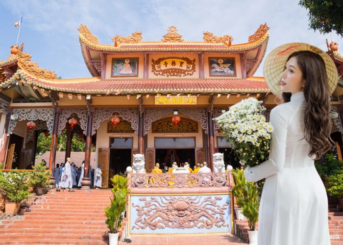 Khám phá ngôi chùa này du khách có thể check in ở nhiều địa điểm như bức tượng Thích Ca Mâu Ni Phật dưới tán cổ thụ lớn, đang nằm ở tư thế nhập niết bàn hay tượng Quan Thế Âm Bồ Tát đúng trên mình rồng ở hồ nước, chính điện với bức tượng trên đài sen của Đức Phật A Di Đà….