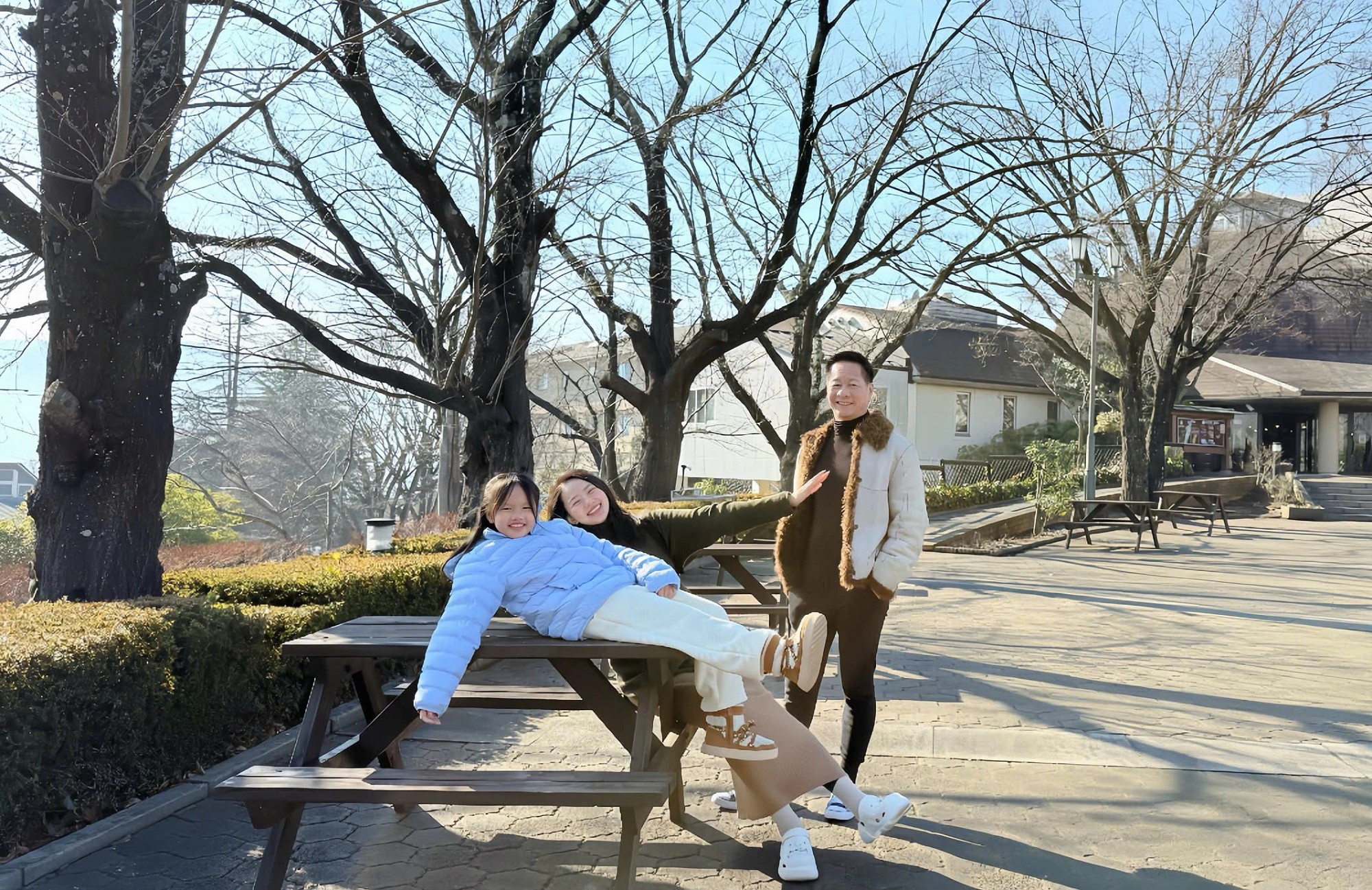 Gia đình cô đã có những ngày đầu năm bên nhau thật vui vẻ tại Tokyo. Ảnh: Facebook nhân vật.Diễn viên, người mẫu kiêm MC Phan Như Thảo gắn bó với đại gia Đức An từ năm 2015 và đón con gái, bé Bồ Câu vào năm 2016. Sau đó, cô gác lại công việc showbiz để tập trung chăm sóc cho tổ ấm của mình.