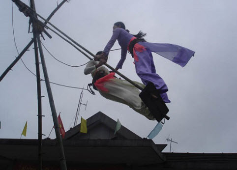 Đập trống, chơi đu ngày xuân là những hoạt động dân gian quen thuộc đối với các tộc người Tạng - Miến, San, một số dân tộc phía tây Myanmar, Thái Lan và cả Việt Nam.