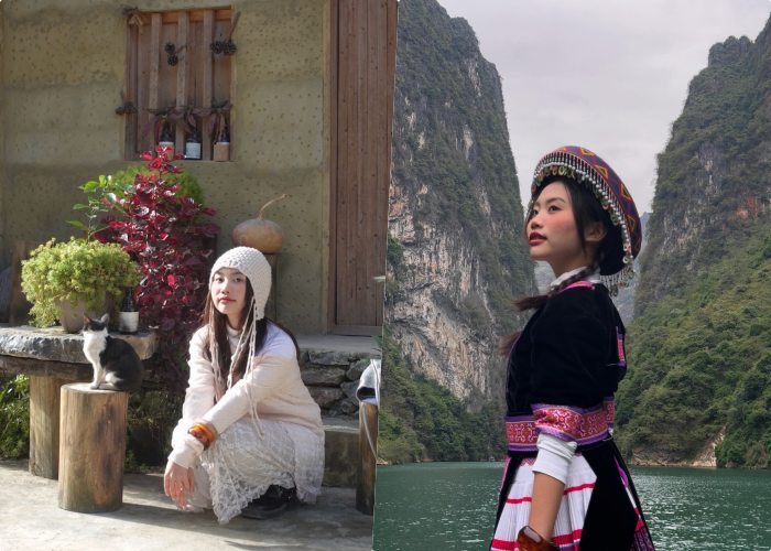 Phương Mỹ Chi du lịch Hà Giang cùng bạn bè và dành thời gian ghé thăm nhiều điểm đến nổi tiếng của xứ sở cao nguyên đá như hẻm Tu Sản, sông Nho Quế hay làng Lô Lô Chải.