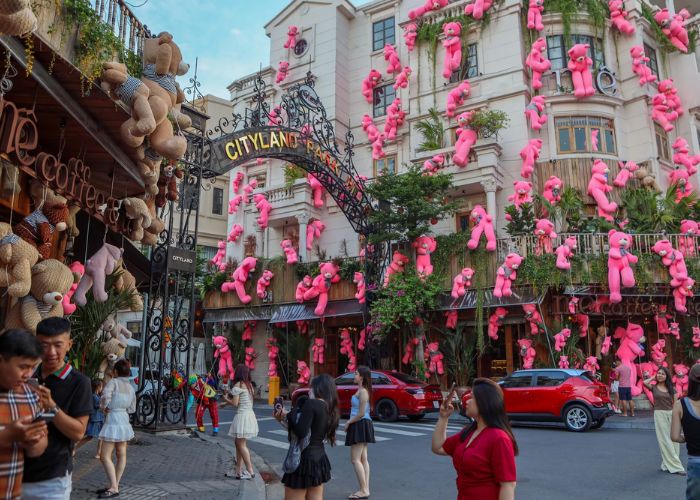 Giới trẻ thích thú với mô hình quán cà phê gấu bông tại HCM. Ảnh: ploQuán cà phê trên đường Phan Văn Trị (phường Gò Vấp, TP.HCM) gây ấn tượng mạnh khi khoác lên mình ý tưởng trang trí hơn 1.000 chú gấu bông với đủ màu sắc và kích cỡ. Ngay từ khi ra mắt, quán đã chuẩn bị khoảng 700 chú gấu để phục vụ mùa hè, tạo nên một không gian vui tươi và mới lạ.