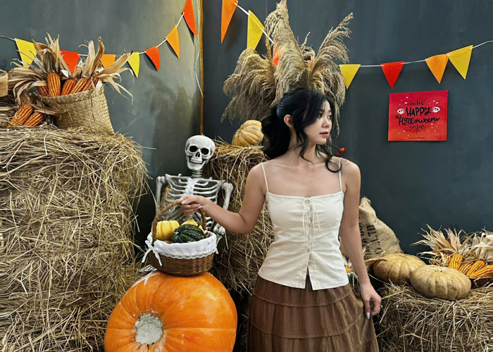 Những món đồ trang trí quen thuộc vào ngày lễ Halloween như bí ngô, bộ xương…tạo nên background check-in ấn tượng, thú vị. Ảnh: PUN Coffee PUN Coffee hỗ trợ thuê đồ với mức giá chỉ 50.000 VND/giờ nên team mê chụp ảnh không cần phải tốn công chuẩn bị trang phục phù hợp với background. Ngoài ra, quán còn rất chịu khó thay đổi concept theo mùa, theo các chủ đề “hot hit” nên hội chị-em-bạn-dì nhớ cập nhật thông tin trên fanpage để sắp xếp thời gian ghé thăm phù hợp nhé.