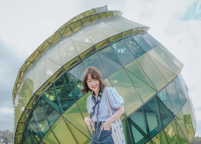Vẻ đẹp của búp atiso khiến nhiều du khách say mê và tìm đến check in mỗi khi có dịp đến với quảng trường Lâm Viên. Đặc biệt khi đêm về, búp atiso lên đèn thì khung cảnh lại càng trở nên lung linh và mê hoặc. Ngoài check in ở phía bên ngoài, du khách còn có thể vào trong búp atiso nổi tiếng, check in quán cà phê Doha với không gian rộng rãi tuyệt đẹp.