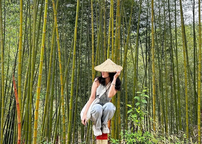 Rừng trúc Yến Dương Bắc Kạn đẹp như trong tranh vẽ. Ảnh: EvaDù đang dần được biết tới nhưng rừng trúc Pù Lầu vẫn rất hoang sơ. Bạn có thể dừng chân hít hà hơi thở trong lành của đất trời xung quanh. Hương trúc thỉnh thoảng lại hòa quyện trong gió phảng phất quanh du khách một cách lạ lùng. Đắm mình trong rừng trúc, bạn sẽ tha hồ được sống ảo, tha hồ check in mà chẳng cần tạo dáng cầu kỳ vì góc nào lên ảnh cũng đẹp.