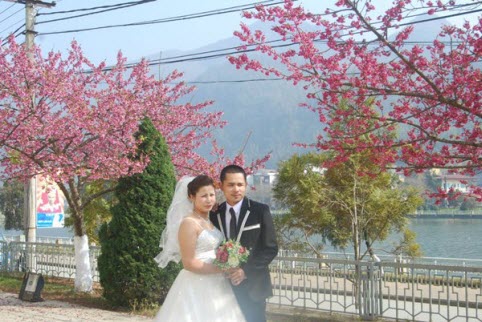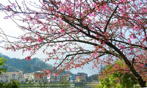 Rặng cây hoa anh đào Nhật Bản trồng ven hồ trung tâm thị trấn Sa Pa năm nay nở hoa rực rỡ đúng dịp đầu năm mới 2015, thu hút rất nhiều khách du lịch đến chiêm ngưỡng.