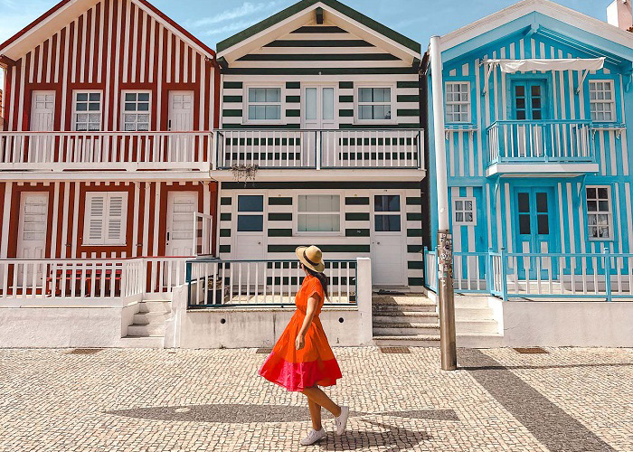 Ghé thăm Praia da Costa Nova check in với những ngôi nhà màu sắc nổi tiếng. Ảnh: PinterestĐến với thành phố biển Aveiro Bồ Đào Nha, sao có thể không ghé thăm Praia da Costa Nova check in với những ngôi nhà màu sắc nổi tiếng dọc bờ biển đầy cát. Hãy trải nghiệm sự thú vị của chợ cá sôi động Aveiro, nơi những người bán hàng địa phương kéo những mẻ cá đánh bắt tươi hàng ngày để bán cho người dân địa phương và cả khách du lịch với giá cực phải chăng. Hãy thử tìm mua một ít bacalhau đóng hộp (cá tuyết muối), một đặc sản của Bồ Đào Nha để mang về nhà làm quà cho người thân.
