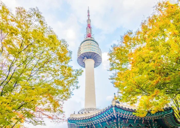 Mùa thu là mùa đẹp nhất để ghé thăm tháp Namsan khi cả ngọn núi được nhuộm bởi sắc vàng, đỏ của lá phong và ngân hạnh. Nhiệt độ lúc này dao động từ 15-25°C, vô cùng dễ chịu, thích hợp cho việc leo núi, tản bộ và chụp ảnh. Đây cũng là thời điểm lý tưởng để tận hưởng không khí lãng mạn và ngắm nhìn Seoul từ trên cao giữa bầu trời trong xanh, đầy quyến rũ.